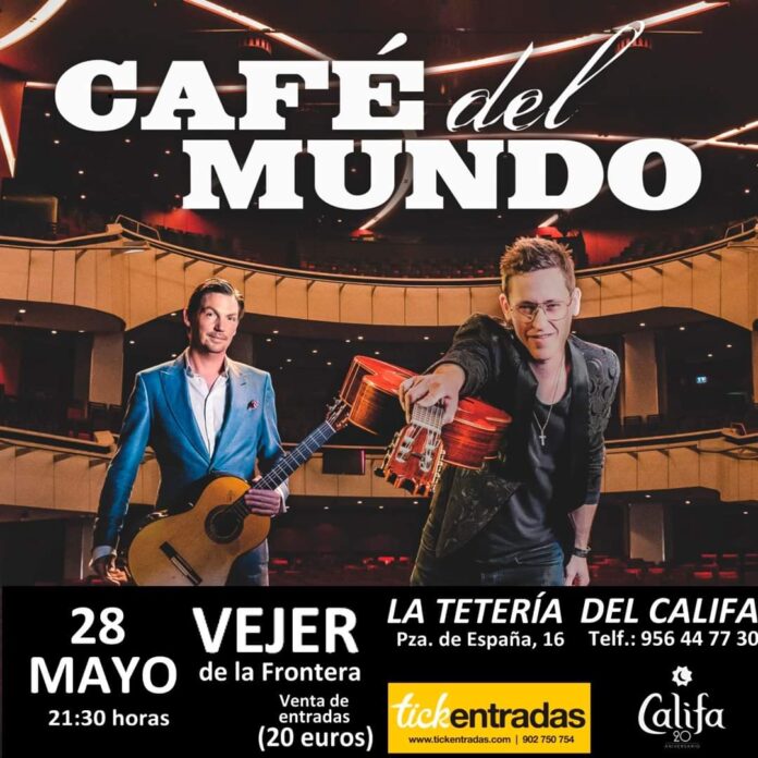La Tetería del Califa, ubicada en la Plaza de España, número 16, en Vejer, anuncia un concierto para el próximo día 28 de mayo con un grupo un tanto peculiar. Los músicos alemanes fusionan el flamenco y el jazz con sus guitarras clásicas ofreciendo un espectáculo emocionante. Se trata de Café del Mundo, que se subirán al escenario del conocido espacio cuando los relojes en la provincia de Cádiz marquen las 21:30 horas