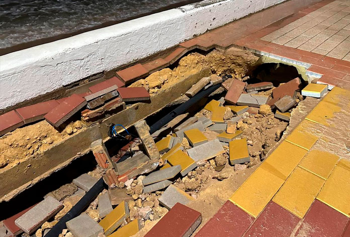 El delegado de Playas, Juan Miguel Muñoz, ha informado que “las obras de emergencia, llevadas a cabo por el Ministerio para la Transición Ecológica y el Reto Demográfico, finalizaron a principios de 2025 con el objetivo de garantizar una franja mínima de playa seca de 20 metros y favorecer la conservación del dominio público marítimo-terrestre. Sin embargo, los fuertes temporales han provocado hundimientos en el pavimento, así como desprendimientos de losas y bloques de hormigón, afectando a infraestructuras subyacentes, como tuberías y cableado”.