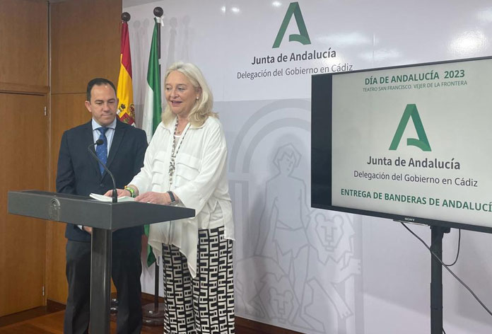 La delegada del Gobierno regional, Mercedes Colombo, ha dado a conocer la decena de entidades y personajes que serán galardonados con la Bandera de Andalucía. Un acto donde ha contado con la presencia del alcalde de Vejer, Manuel Flor, ya que será en el teatro municipal San Francisco donde se realice este reconocimiento.