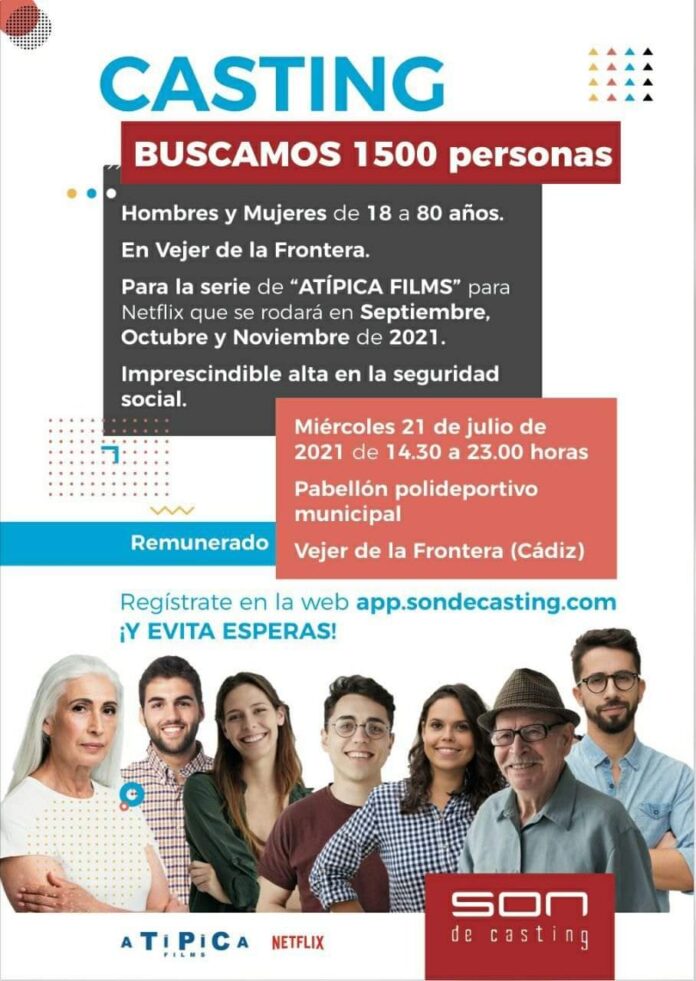 La productora Son de Casting ha organizado para este miércoles, 21 de julio, en Vejer una selección de figurantes para una futura serie de Netflix que realizará Atípica Films.