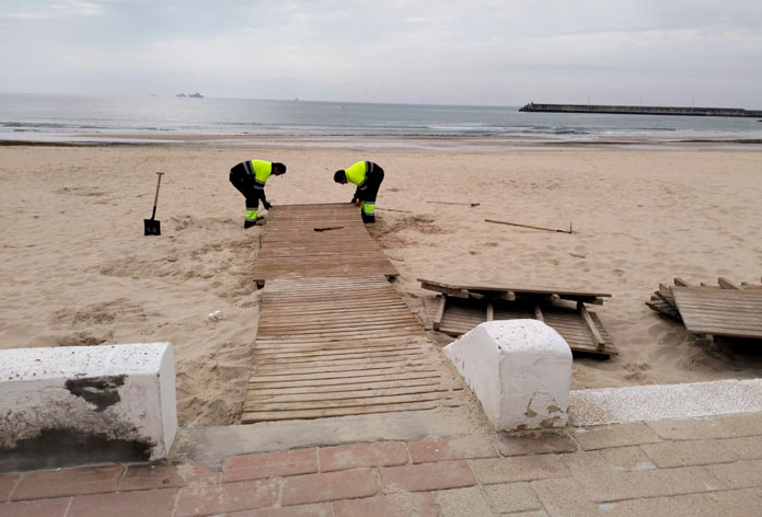 El área municipal realizó la semana pasada trabajos de instalación de pasarelas, zonas de juegos y servicios en la Playa del Carmen de Barbate, dentro de la planificación para la pretemporada que se inicia esta Semana Santa.