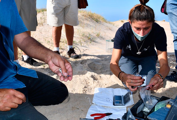 La Diputación Provincial de Cádiz y la Fundación CeiMar siguen llevando a cabo acciones de formación, divulgación y sensibilización sobre la conservación del chorlitejo patinegro en el litoral gaditano. Con este motivo, representantes de ambas instituciones, así como del Ayuntamiento de Conil de la Frontera, se han desplazado hasta la playa de Castilnovo de esta localidad, uno de los enclaves preferentes de anidamiento de la especie, para proceder al anillamiento de un polluelo recién nacido en este hábitat.