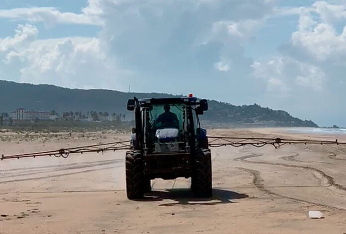 A una multa de entre 600 y 60.000 euros por un delito medioambiental grave se pueden enfrentar las personas que autorizaron o realizaron la desinfección llevada a cabo este pasado domingo en la playa de Zahara de los Atunes.