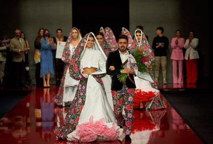 Con el nombre de «Cobijadas» se ha presentado la colección de moda flamenca con la que el sanroqueño Alejandro Andana ha ganado el primer premio del Certamen de Jóvenes diseñadores SIMOF 2022. Una colección en la que se ha inspirado en el traje típico de Vejer.