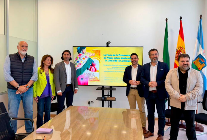 El alcalde Vejer, Antonio González, acompañado de la concejala de Fiestas, María José Espinosa han presentado la programación de la Feria de Primavera que este año se dedica a La Línea de la Concepción, localidad en la que también se han presentado estos actos.