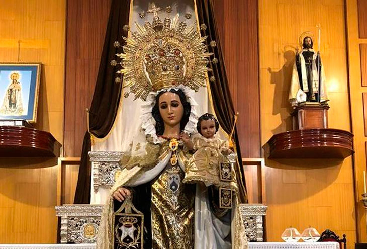 La imagen ha sido repuesta al culto tras pasar por un proceso de restauración en la capital gaditana que ha durado seis meses. La venerada talla, que es obra de Eduardo Espinosa, y que está datada en 1938, tenía previsto el regreso a localidad en el pasado mes de marzo, pero por motivos de la pandemia del Covid-19, la Junta de Gobierno de la Hermandad del Carmen decidió esperar a que el estado de alarma pasase y se respetara el confinamiento.